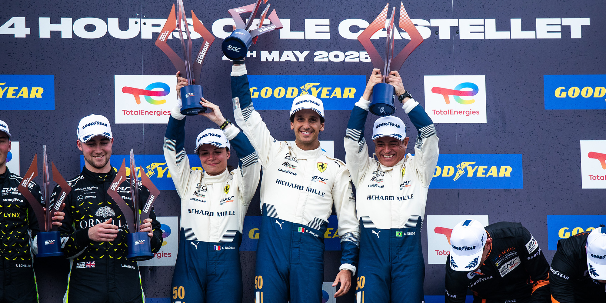 The no50 Richard Mille AF Corse Ferrari 296 LMGT3 has won two races in 2025, which has put Custodio Toledo, Riccardo Agostini and Lilou Wadoux at the head of the championship standings with a 12-point advantage going into the final race of the season.