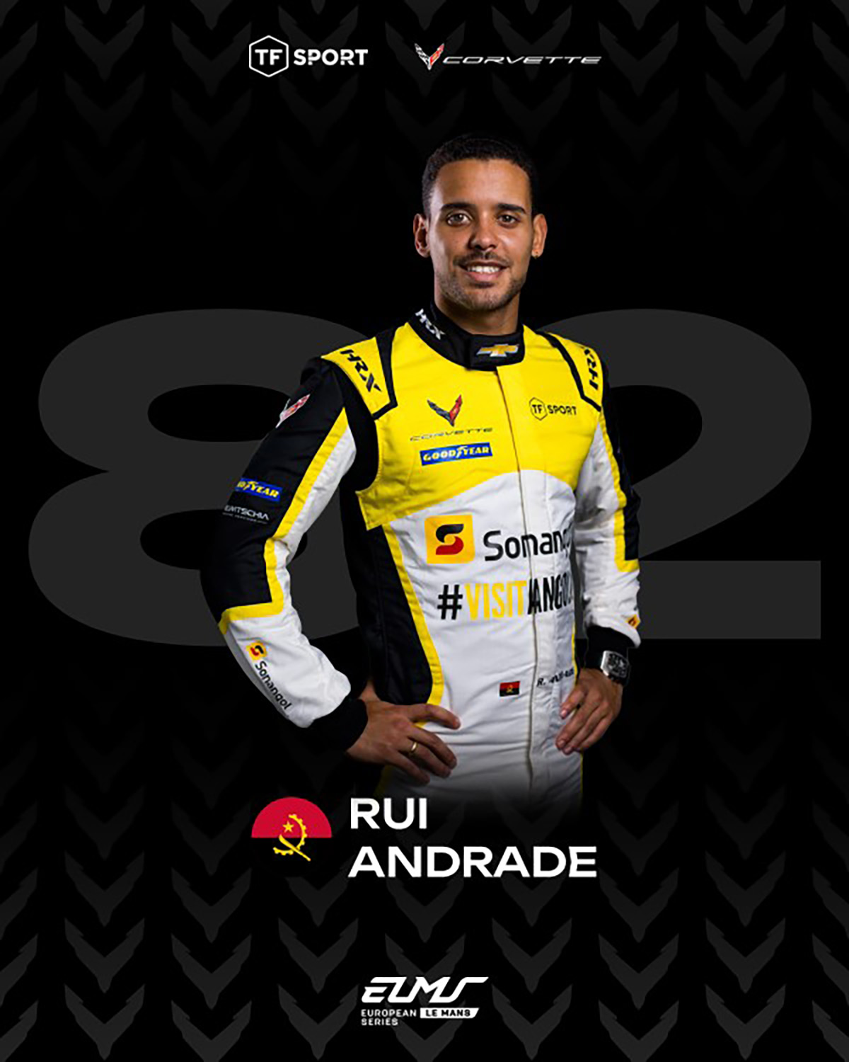 RUI ANDRADE, #82 TF SPORT DRIVER: “I am excited to return to ELMS and to race on some of Europe's most iconic circuits with the Corvette. It is a new challenge for the whole team, but with their experience and knowledge, I have no doubt that we will have a great season together. We have a strong lineup: I know Charlie well and I am looking forward to working with Hiroshi. I can't wait to start!”.
