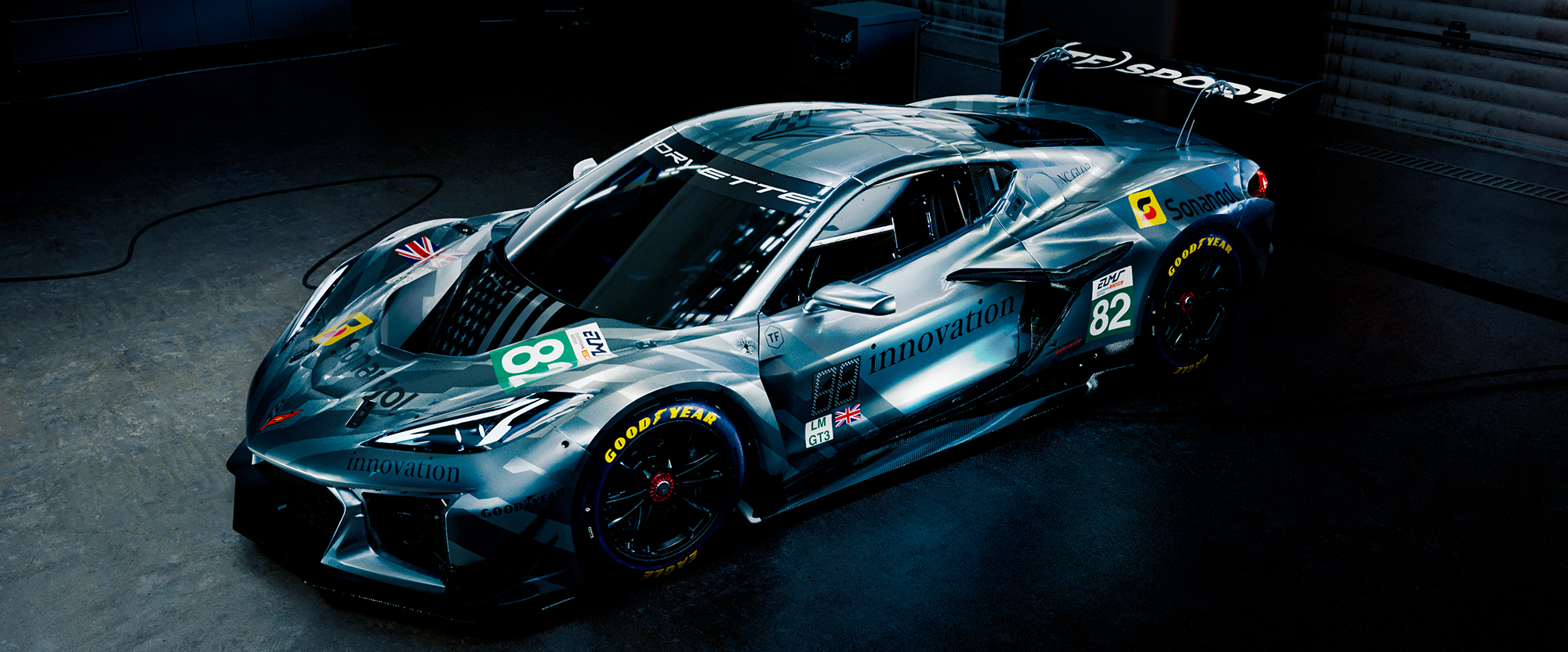 The US manufacturer's car will hit the track in the same graphic style used for the FIA World Endurance Championship 2025, but in completely different colours. The #82 Corvette Z06 GT3.R will feature a gleaming silver-grey livery, with the Corvette logo on the roof and a grey US flag on the bonnet.