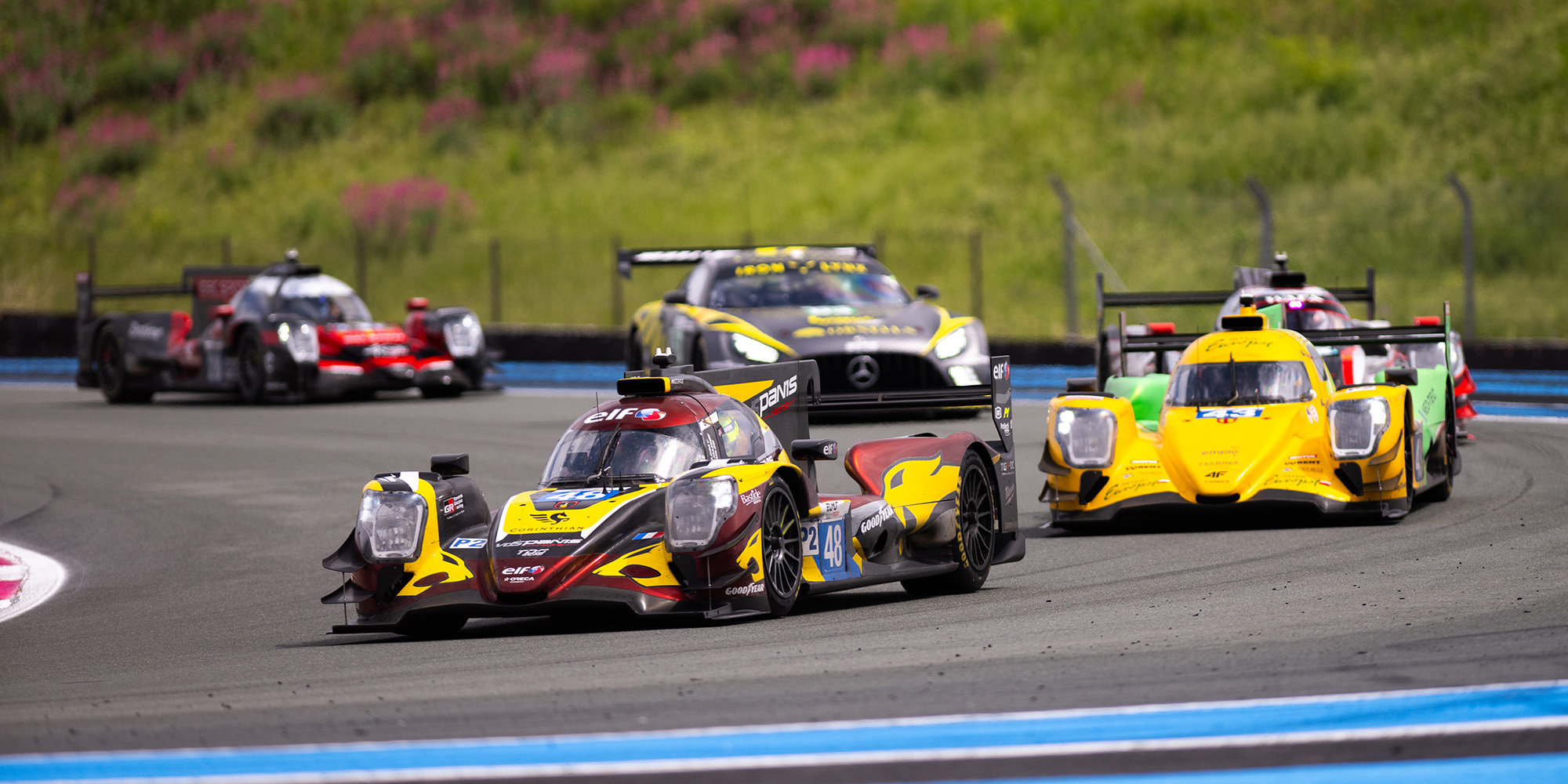 The no48 VDS Panis Racing Oreca led the field into the first corner with Oliver Gray pulling away from the rest of the field led by Jakub Smiechowski in the no43 Inter Europol Competition, the Polish driver getting ahead of Jonas Ried in the no9 Iron Lynx-Proton at the start.